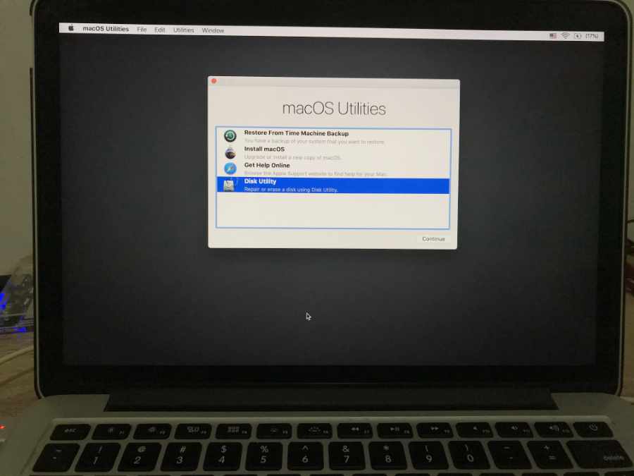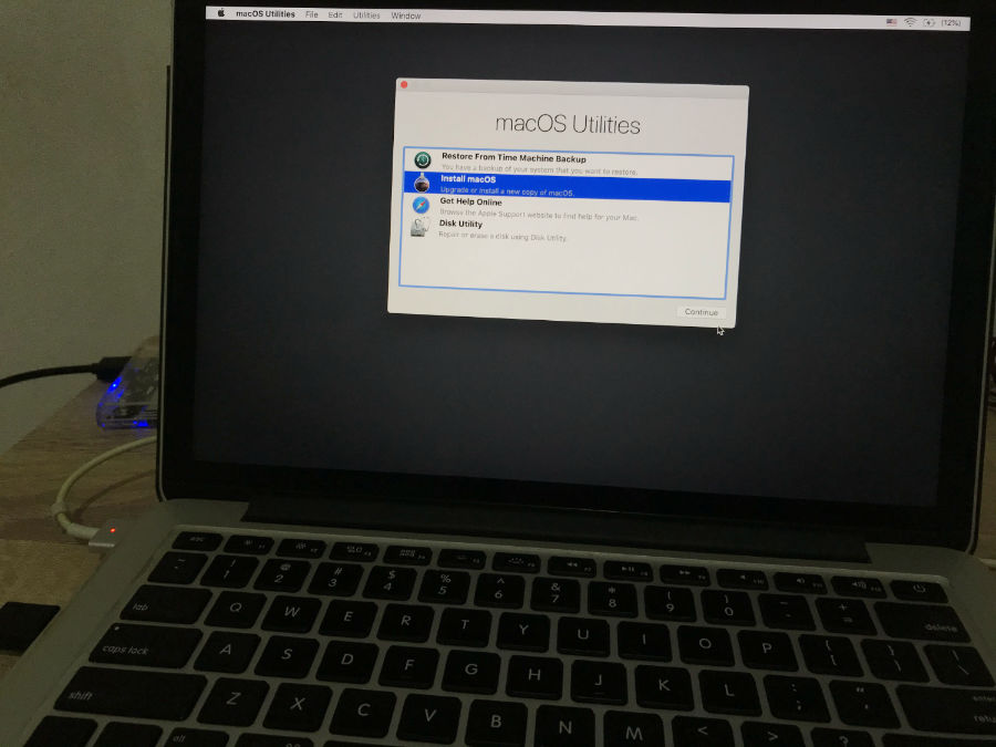 - Install macOS. Setelah format SSD internal selesai, kembali ke halaman awal macOS Utilities, dan pilih Install macOS, klik Continue. Pilih tujuan instalasi macOS (SSD internal), lalu klik Install. Macbooknya akan menginstall OS dari bootable FD tadi. Kira-kira tahap ini akan memakan waktu beberapa belas/ puluh menit.