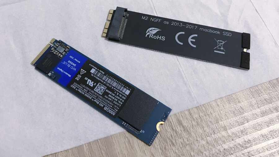 - SSD WD Blue SN550 M.2 Pcie Gen3 Nvme 2280 500GB – WDC Blue M2 500GB (Harga: Rp1.033.000). Sebelumnya saya ingin membeli WD Black edition yang memiliki kecepatan Write dan Read yang lebih cepat dari WD Blue, namun setelah bertanya-tanya dan browsing, WD Black tidak worth it dipasang di Macbook Pro 2015 yang 13 inch, karena socket dari Macbook Pro saya ini hanya PCIE 2.0, sehingga potensi kecepatan Write dan Read WD Black tidak akan tercapai secara optimal.