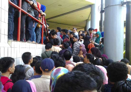 Bukan hanya mahasiswa Unhas, penonton juga berasal dari banyak kalangan, semua tampak begitu antusias dengan acara ini. Mulai dari sebelum tiket dibagikan, sebelum masuk gedung bahkan sampai dengan acara berlangsung. Para penonton (termasuk saya) berdesak-desakan memasuki gedung. Sebenarnya saya sempat ragu bisa masuk, karena tidak punya tiket, tapi, Alhamdulillah, dengan berusaha sambil berdesak-desakan seperti ada pembagian sembako gratis akhirnya saya juga bisa masuk. Dan dapat kursi juga. Nice!